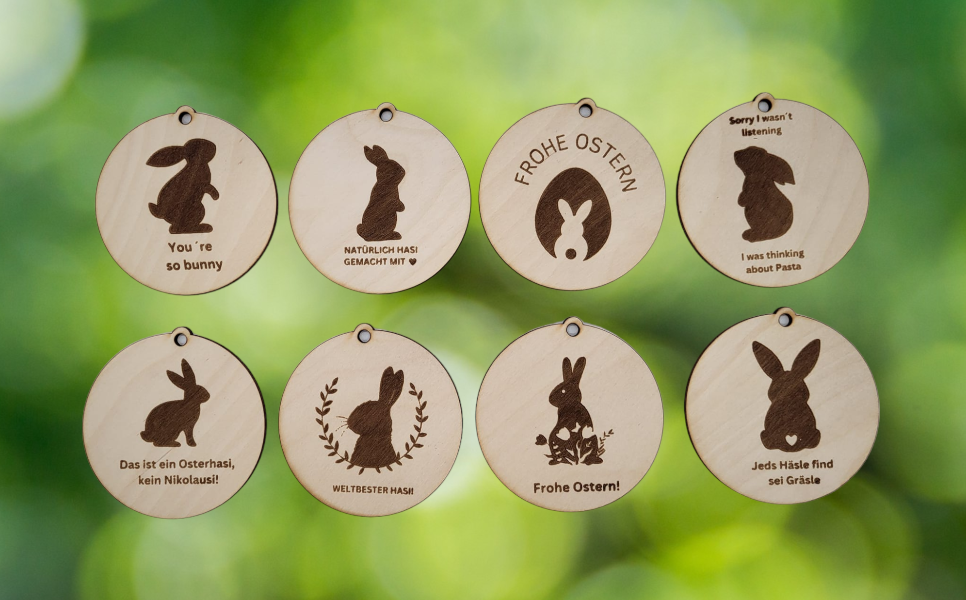 Geschenkanhänger Bunnyedition - gemischte Motive In begrenzter Stückzahl haben wir unsere Geschenkanhänger mit ⌀ 8 cm in verschiedenen Ostermotiven für euch zusammengestellt. Gib deinen Ostergeschenken den letzten Schliff, damit die Verpackung genauso einzigartig ist, wie der Inhalt. Mit unserem Geschenkanhänger aus Holz, wird jedes Geschenk zum Unikat. Die Anhänger haben ein vorgebohrtes Loch, dadurch lassen sie sich leicht mit einer Schnur oder einem schönen Band am Geschenk befestigen. Größe: ⌀ 8 cm Weltbester Hasi! Jeds Häsle find sei Gräsle Frohe Ostern! Natürlich Hasi gemacht mit <3 Das ist ein Osterhasi, kein Nikolausi! You´re so bunny Frohe Ostern Sorry I wasn´t listening - I was thinking about Pasta Inhalt: gesam 8 Stück Durchmesser 8 cm