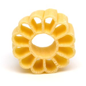 Matrize aus POM Farfalle rigato / Schmetterlingsnudeln gestreift für Philips Avance. Größe: 30 mm Dicke: 1 mm Farfalle ‚Schmetterlinge', sind italienische Nudeln in Schmetterlingsform. Besonders bei Kindern sind diese Nudeln beliebt. Egal ob als Hauptgericht mit Tomatensauce, als Beilage zum Sonntagsbraten oder im Nudelsalat. Diese Nudeln machen immer eine gute Figur. Hier in der Variante mit Rillen. Teigwareneinsatz aus POM (Polyoxymethylen - garantiert lebensmittelechter Kunststoff) zur Verwendung in Philips Pasta Maker Avance, Plus, Premium und der 7000er Serie. Es wird kein Adapter o.ä. benötigt. Allgemeine Hinweise zur Kompatibilität und Anwendung Die Matrize ist mit folgenden Modelnummern vom Philips Pasta Maker kompatibel. Die hinteren zwei Nummern können beliebig sein. HR2330/xx HR2331/xx HR2353/xx HR2354/xx HR2355/xx HR2356/xx HR2357/xx HR2358/xx HR2359/xx HR2365/xx HR2369/xx HR2375/xx HR2378/xx HR2380/xx HR2381/xx HR2382/xx HR2660/xx HR2665/xx Wenn Sie unsicher sind, ob Ihr Modell für die Matrizen passt, schreiben Sie uns gerne eine Nachricht, am besten mit einem Foto Ihrer Nudelmaschine. Wir werden Ihnen zeitnah antworten und sagen, welche Matrizen bei Ihnen passen. POM ist die Abkürzung für Polyoxymethylen, ein garantiert lebensmittelechter Kunststoff. Es handelt sich dabei um genau das gleiche Material, dass auch bei den Philips Pastamakermatrizen verwendet wird. POM hat den Vorteil, dass es nicht viel wiegt und man die Matrizen zur Reinigung in die Spülmaschine geben kann. Bitte beachten Sie, dass die Matrizen mit Microfräsen gefertigt werden. Das ist ein aufwändiges Verfahren, das filigrane Formen ermöglicht. Aber kleine Kratzer von der Produktion und kleinere Späne können vorhanden sein, diese sind bei der Verwendung von POM unvermeidlich. Es empfiehlt sich immer etwas mehr Flüssigkeit zuzugeben, als der Pastamaker anzeigt und nur kalte Flüssigkeiten zu verwenden. Der Teig sollte feucht krümelig sein. Ein Standardrezept für unsere Matrizen finden Sie hier. Was Sie sonst noch wissen sollten? Unsere Matrizen stammen ausnahmslos von der Marke Pastidea. Pastidea ist eine italienische Firma, mit jahrelanger Erfahrung im Design von Nudelmatrizen. Warum eine italienische Firma? Italiener kennen sich einfach am besten mit Pasta und Co aus und wissen auf was zu achten ist. Der Entwurf einer Matrize erfolgt vom Trafilaio, übersetzt ist das so etwas wie ein Matrizendesigner. Ein guter Trafilaio weiß ganz genau, an welcher Stelle einer Matrize noch ein kleines bisschen weggefräst werden muss, damit die Nudeln später die richtige Rundung nehmen. Maurizio von Pastidea beherrscht diese Kunst par excellence. Tauchen Sie mit den Gaumen-Freunde n ein in die Welt der eigenen Nudelproduktion. Der Geschmack von frischer selbstgemachter Pasta ist unvergleichlich gut.