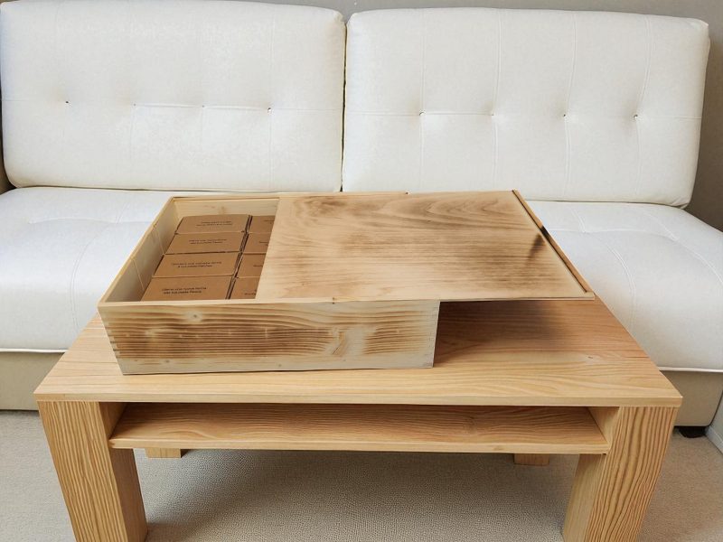 Wie wärs mit dieser schmucken Holzkister mit Schiebedeckel? Die Oberfläche ist geflammt.