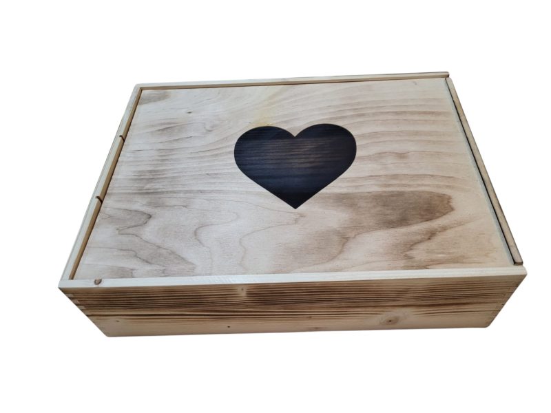 Wie wärs mit dieser schmucken Holzkister mit Schiebedeckel? Die Oberfläche ist geflammt.