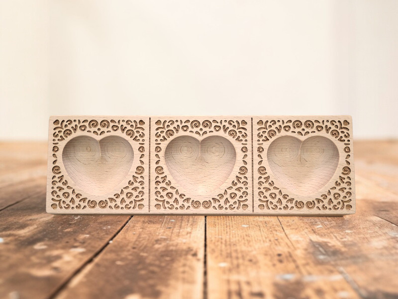 Raviolibrettchen für 3 Ravioli – Herz-Mulde – Stickerei-Muster