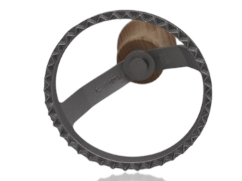 Mit einem runden Raviolistempel kann man runde Raviolis produzieren, oder – besonders hübsch – halbrunde. Wie das mit den halbrunden geht, sieht man auf den Bildern hier.